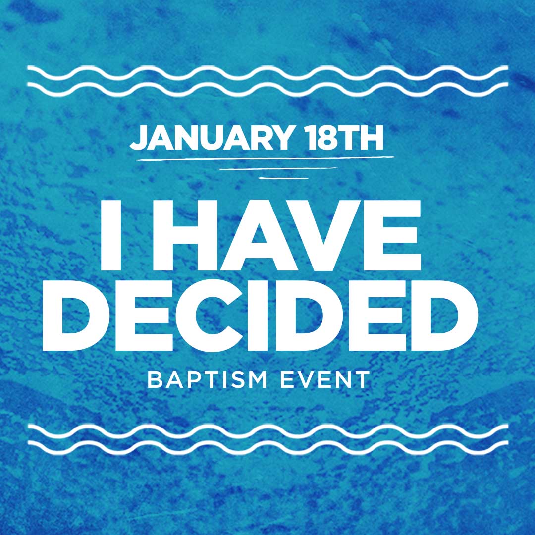On Sunday, January 18th – we will be having an “I Have Decided” baptism event at all campuses. We welcome everyone who wants to take this next step in their faith journey to come and be baptized.